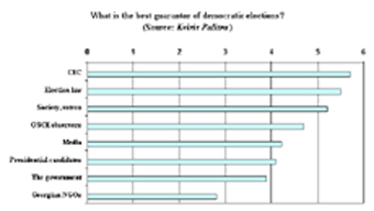 According to a poll of 503 Georgians conducted by the newspaper Kviris Palitra, the Central Elections Commission (CEC) is viewed as the best guarantor of democratic elections. Respondents were asked to rank eight choices in order of importance with regard to securing a democratic presidential election on January 5.