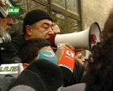 Main opposition candidate Levan Gachechiladze demanded to be interviewed live by the state-owned broadcaster yesterday as he led a protest outside the network’s offices in Tbilisi.