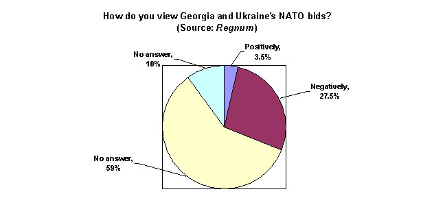 On April 12–13 the Russian polling agency Obschestvennoe Mnenie (Public Opinion) questioned 1500 Russians across 46 regions on issues related to NATO and Georgia and Ukraine’s membership bids.