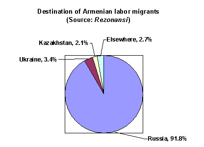 Russia top destination for Armenian labor migrants