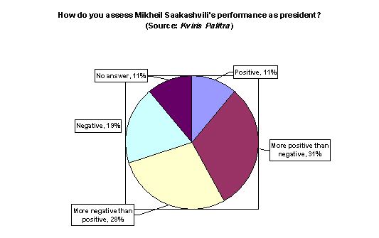 The newspaper Kviris Palitra carried out an informal poll, asking 406 people how they assessed President Mikheil Saakashvili’s performance. The newspaper did not specify when the poll was conducted or its methodology. Numbers have been rounded.