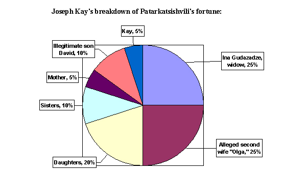 Kay said that another quarter of the fortune would go to a woman he identified only as “Olga,” whom he said may have also been married to Patarkatsishvili, and ten percent to an illegitimate son, David.