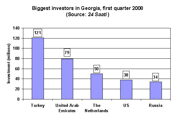 Turkey was the biggest investor in Georgia in the first quarter of the year, accounting for nearly a third of the total, the newspaper 24 Saati reports. A total of USD 430.2 foreign direct investment entered Georgia in this period, according to the newspaper.