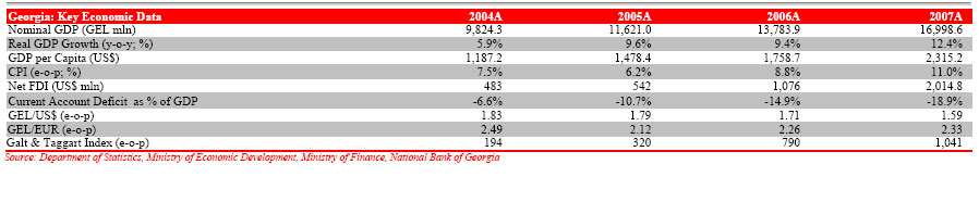 Georgia’s first quarter foreign capital inflow was USD 747.4 million, the government said, a nearly 120 percent increase on the first quarter in 2007.