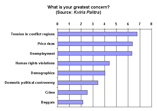 The newspaper Kviris Palitra put the question “What is your greatest concern” to 510 Georgians. They were asked to rank a list of eight options in descending order of importance.