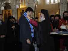 Between meetings with legislative and executive government representatives, the Pope of Alexandria and All Africa was decorated by Ilia II with the highest merit of the Georgian Church: a gold order blessed by Saint George. He in turn honored the Patriarch with a holy cup from Egypt.