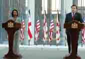 United States Secretary of State Condoleezza Rice had visited Tbilisi on August 15, negotiating the signing of the six-point ceasefire treaty by the Georgian side. President Saakashvili signed the agreement that day. Speaking afterwards at a joint press conference with Rice, Saakashvili slammed the European media and officials for their “muted reaction” when he spoke about Russia’s preparations for a military action against Georgia after April, as a result of Georgia been denied a Membership Action Plan (MAP) for NATO at a summit in Bucharest. Both The President and the Secretary of State clarified that talks on the implementation of an international monitoring mechanism on the ground would continue. They also claimed that the ceasefire plan did not guarantee the internationalization of this, as this would be the subject of subsequent talks.