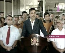 Georgian President Mikheil Saakashvili has opened a paper mill in the village of Tserovani