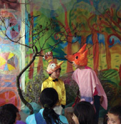 From the very beginning the kids approached this new experience with great zeal. They were proud of being taken seriously. “It was really impressive to see how even wild and aggressive children adapted to the process and cooperated,” said Lier happily. “There were almost no rivalries. It was just great to see how concentrated and enduring they were even after a couple of days.” By Saturday afternoon they could self-confidently perform in front of an audience of their peers, teachers and other invited guests. Six fables were performed on stage and the loud applause which greeted these made them obviously proud of “their” theatre – an unforgettable event for them.