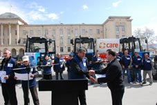 “Exactly one year and eight months ago we were standing here providing humanitarian food aid to the war-affected population and it is significant that we are now talking about development support for IDPs and host communities. These people depend on income from agricultural activities and the machinery we are handing over today is crucial for their income generation,” declared Koba Subeliani, Minister of Refugees and Accommodation. The presentation was also attended by Shida Kartli Governor Lado Vardzelashvili, representatives of the Ministry of Agriculture and the local authorities of the Shida Kartli region and senior managers of international and local NGOs.