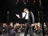 Being held the day after the tragic death of Polish President Lech Kaczynski the evening began with an addition to the programme, the orchestral version of the pre-communion hymn "I am the True Vine" familiar in Georgian Orthodox Churches. This rendering would not look out of place as the opening of any concert in Georgia, as a reminder of what we are all here for, and was a fitting tribute from Georgia to the late President. It also served as a clever counterpoint to the music of Davitashvili, distinguished by the assured playfulness of someone who has just discovered they are middle aged. In a reversal of the advertised order the first piece played was the suite from the ballet "The Wedding of the Sun". The title should give away the lightness of the piece, and although it may have been classical dance music it was more a communal hug amongst instruments, which you could dance to, or not, as you saw fit. It was followed by what was billed as the first piece, two Georgian dances, Kartuli and Parikaoba (Fencing). These stressed simple melodies and a big orchestra trying to be a Mozart-sized one. One of the virtues of Vakhtang Machavariani as a conductor as that he is very good at bringing out the mood which underlies a piece: whatever the notes may say, the maestro knows what the composer meant, and how to actually express it clearly in a way which transcends the notes.