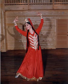 Jeirani is a dance built around the hunting of a doe and is beautifully choreographed by Nino Ramishvili. The dance not only incorporates classical ballet movements but paints a breathtaking picture of a hunting scene. Everyone who has seen Jeirani performed by Nino Ramishvili cannot forget the beautiful body movements, the unique dance steps and the spirit the audience becomes charged with.