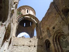 Historically, the area comprised the following provinces: West of the Arsiani Mountains were Tao, Klarjeti and Shavsheti, to the east lay Samtskhe, Erusheti, Javakheti, Artaani and Kola. The landscape is characterised by mountains and the river-systems of the Chorokhi and the Mtkvari. Tao-Klarjeti’s geographical position between the great Empires of the East and the West, and the fact that one branch of the Silk Road ran through its territory, meant that it was subject to a constant stream of diverging influences. In the 9th-11th centuries, Tao-Klarjeti was ruled by the Iberian Bagratids, and the region played a crucial role in the unification of the Georgian principalities into a single feudal state in 1008. Alongside the magnificent nature, the architectural monuments of Tao-Klarjeti (churches, monasteries, bridges and forteresses) today function as tourist attractions, but many monuments are at risk, as nothing is being done to preserve them. There have also been cases of deliberate destruction (for instance in Opiza and Tbeti).
