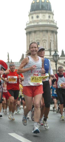 Despite the heavy rain, several bands were out to entertain runners as well as the brave spectators lining the streets of Berlin. Runners prefer the rain to the heat however, despite the wet clothes, puddles and wet shoes squelching with every step. In a rainy Berlin, Fiona ran her 3rd best marathon time - 3 hours 34 minutes, she says she will continue to run marathons until her legs give up and is already planning her next 42 km race in the spring of 2011 – possibly in Hamburg or Paris.