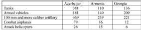 The Russian news agency Regnum recently published information on the quantity of military armaments in the South Caucasus countries for January 1, 2011.