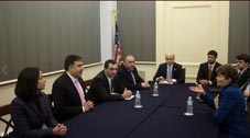 Georgian President Mikheil Saakashvili met with the U.S. lawmakers and financial analysts in Washington on Tuesday, praising his country's many reforms.