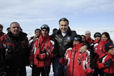 The President also visited Akhalkalaki. Saakashvili arrived in the village of Aragva, where a newly constructed ski track was opened. The 300-metre-long track has a modern ropeway. In addition, he opened a ski school, equipped with a new inventory and capable of accepting 160 students, who will be trained by qualified instructors.