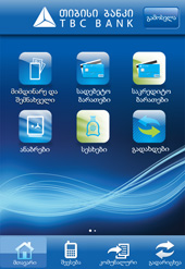 In particular, through the application of mobile banking at TBC Bank, iPhone and Android users will be able to check out their accounts, pay bills, pay into their mobile phone accounts, transact sums within Georgia, contact the call centre, get informed about the exchange rates, be aware of the distance between the nearest TBC Bank branch and/or ATM and them at a specific moment through a special online map (Google Maps)…