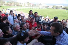Georgian Dream leader Bidzina Ivanishvili spoke to supporters on Tuesday, at the opening of a campaign office in his native village of Sachkhere, Imereti.