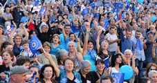 Before coming to Dedoplistskaro, the coalition leader was in the Lagodekhi region where his convoy was disturbed by UNM supporters. Ivanishvili's convoy was led by the young coalition supporters dressed in the coalition T-shirts on horseback.