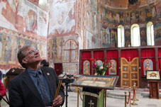 Ambassador Norland is visiting Kutaisi, his first stop was at the Gelati Monastery to view the progress of the conservation works of the frescos of St. Marine Chapel at the Church of the Virgin. The conservation work at the Gelati Monastery is sponsored by a $40,880 grant from the U.S. Ambassador’s Fund for Cultural Preservation (AFCP). The U.S. AFCP has supported thirteen projects since 2001 in Georgia, totaling $343,208. Gelati Monastery is among the most important cultural landmarks of Georgia and is UNESCO’s World Heritage Site.
