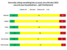 75% of respondents say that taking everything into account in general they and their household remained the same since October 2012. 15% responded that they were better off and 10% - worse.
