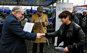 On March 7, USAID distributed rot tillers and related land cultivation accessories as part of the agricultural mechanization livelihood packages to 88 vulnerable beneficiaries from Gori, Kareli and Khashuri municipalities.