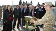 The representative of IV Mechanized Brigade introduced the fulfilled reforms and training programs to members of delegation. Afterwards, they visited the simulation classes. Later, the guests viewed military equipment and weapons exhibited on the brigade drill ground.