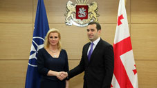 NATO Assistant Secretary General for Public Diplomacy Kolinda Grabar-Kitarovic said, "I would like to use this opportunity to thank Georgia for the incredible important contribution to our ISAF mission in Afghanistan. Georgia is the biggest non-NATO contributing country and the work that your troops have been doing in Afghanistan is with the utmost level of professionalism, dedication and courage and has been very valuable to the success of the ISAF operation. I believe if there were any doubts about the course where Afghanistan is heading and where the people of Afghanistan want to see their country heading they were dispersed by Saturday's elections where 7 million people came out and voted, clearly demonstrating that Afghans are ready to take the reins of the future of their own country in their own hands. We are of course planning a follow up mission, "Resolute Support", provided that the BSA and Sofia Agreements are signed and we are grateful that Georgia has also committed to participate with us in that train, advice and assist mission which will be important to keep the gains achieved in Afghanistan. As I have said many times today Georgia is a very valuable and valued partner to NATO. We very much appreciate the reforms you have carried out. Work still remains to be done and the areas we have discussed today concerning the further professionalization of the armed services, of the administrative reforms in the judiciary and other areas. But we recognize the achievements of Georgia with the last elections and with many aspects that have been done and as I said today the Bucharest decision remains that Georgia will become a member of NATO once the conditions for membership have been fulfilled and the allies make that decision."