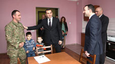 Head of the Georgian government together with the Minister of Defence Irakli Alasania and Chief of General Staff of GAF Vakhtang Kapanadze viewed three completed block of flats in the military settlement and personally handed the keys of adapted flats to their families.