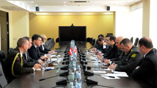 Following the ceremony, the meeting was held between the Ministers of both countries. At the beginning of the meeting, Georgian Minister of Defence thanked the Latvian Minister of Defence for his support of Georgia’s Euro-Atlantic aspirations and its territorial integrity. Irakli Alasania underlined importance of Latvian observers’ participation in the EUMM and active involvement of “Georgia III” Latvian side in the NATO Trust Fund project.
