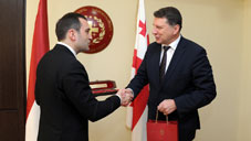 Latvian Defence Minister, together with Deputy Defence Minister Mikheil Darchiashvili and Plenipotentiary Ambassador of Georgia to Latvia Teimuraz Janjalia, also met with the State Minister on European and Euro-Atlantic Integration Alexi Petriashvili. Georgia’s prospects to NATO membership and upcoming Wales Summit were highlighted at the meeting as well. The sides drew attention to the importance of signing Association Agreement with the EU and discussed regional security issues.
