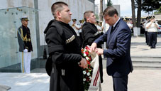 Defence Minister of the Republic of Latvia and the delegation members paid a tribute to the heroes fallen for Georgian territorial integrity. Minister Raimonds Vejonis delivered a minute of silence to the memory of the Georgian heroes fallen in the fight for territorial integrity and international operations and laid a wreath at the Heroes’ Memorial. Chief of General Staff of the GAF, Major-General Vakhtang Kapanadze, as well as the leadership of the MoD and General Staff attended the wreath laying ceremony as well.