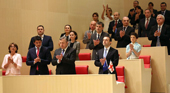 Georgia went about ratifying the document in a very peculiar way. The issue concerns the relations between President Giorgi Margevalshvili and the government headed by Irakli Gharibashvili. For instance, the president did not receive an official invitation from the Parliament to attend the AA ratification process. Georgian Dream MPs said the president does not need a special invitation to visit the Parliament. In the session the EU commissioner Stefan Fule, high-ranking officials from EU countries and representatives of the diplomatic corps in Georgia were present. However, the Georgian president was not present. Some hours later, President Margvealshvili entered the session room and even delivered a short speech after the ratification procedures.