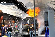 An eye witness said the fire was very strong and explosions were heard. Several fire brigades and emergency services were at the scene immediately, but were unable to extinguish the blaze, the witness stressed.