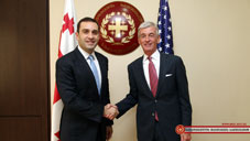 Unites States Secretary of Army John McHugh paid two-day official visit to Georgia. Defense Minister of Georgia Irakli Alasania hosted the American guest at MoD. The sides discussed bilateral cooperation issues in defense sphere between Georgia and the USA. U.S. Secretary of Army highlighted the importance of U.S. Georgian partnership and expressed readiness that the USA will continue active cooperation with Georgia in the field of defense. The sides also referred to the enduring partnership between the U.S. Army Europe and the Georgian Armed Forces. They highlighted the importance to further increase cooperation in the field of staff trainings for Georgian officers and NCOs. The sides focused on the importance of U.S. Secretary of Defense Chuck Hagel’s visit to Georgia. As Minister Irakli Alasania outlined, his American counterpart reiterated readiness to assist Georgia in boosting defense capabilities and to support the implementation of the Substantial Package Georgia received at Wales Summit this month. Regional security issues and the Ukrainian crisis was one of the topics of the discussion. The Georgian side again condemned Russia’s military aggression against Ukraine and its annexation of Crimea. The sides focused on the NATO-led international mission in Afghanistan too. Minister Alasania reaffirmed the willingness of the country to participate in the NATO Resolute Support mission from 2015. The US Army Secretary expressed gratitude to the minister for the contribution the Georgian troops are providing to the ISAF mission. Georgian Minister of Defense, in his turn, underscored the United States’ role in treatment and rehabilitation of the wounded Georgian military, as well as the US support for developing rehabilitation capabilities in Georgia. Following the meeting, Defense Minister of Georgia and U.S. Secretary of Army made joint statements. “I am very glad to host the U.S. Secretary of the Army to Georgia. His visit has particular importance as it is held after the visit of U.S. Secretary of Defense Mr. Hagel. Today we discussed the bilateral cooperation issues which we agreed to be deepened during Mr. Hagel’s visit. We have a great experience of bilateral military partnership. Our military fight shoulder to shoulder in the various military operations and have great confidence to one another. Today both sides confirmed each other to continue to deepen the existing cooperation. We also referred to the regional security issues, the existing challenges in the Ukraine and the Middle East that threats not only our region, but the entire world. We also spoke about these challenges and joint efforts to overcome them. I’d also like to outline that our bilateral cooperation aims to boost Georgia’s defense capabilities. This was one of the issues which we discussed at the meeting in details. I want once again to welcome U.S. Secretary of Army to Georgia and wished him every success, as his success is promotion of our countries”, stated Defense Minister of Georgia Irakli Alasania.