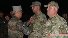 First Deputy Minister of Defence of Georgia Gocha Ratinani and Deputy Chief of the General Staff of the GAF COL Roman Jokhadze attended the event. Brigadier General Jean-Marc Bacquet Force Commander EUFOR RCA delivered speech at the ceremony. He gave high appreciation to the Georgian military`s high professionalism and personal discipline. The French General thanked the GAF representatives for their contribution to the mission ongoing in the Central African Republic under the aegis of EU. Brigadier-General personally granted EUFOR medals to the Platoon Commander Lieutenant Giorgi Sakhokia, Company Commander Captain Paata Patsatsia and Senior Military Representative Major Lasha Chanchaleishvili.