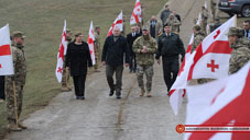 A solemn event continued with an awarding ceremony at the helicopters’ airfield of the Centre. The Georgian President awarded three “Medals of Honor” to three military servicemen. Major-General Vakhtang Kapanadze awarded two servicemen with service guns for a high professionalism revealed during performing the service duties. Deputy Minister Levan Girsiashvili bestowed three officers the medals “Devoted to Motherland” and “For Outstanding Service in the Armed Forces”.