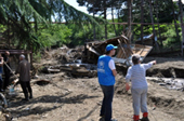 “I cannot even describe what we went through: trees, stones, mud, water, houses were coming at us. Where we are standing now in this mud, was my neighbor’s house, among the ruins of the collapsed house she was screaming and crying for help. Most of the houses and roads in the village are destroyed, we are left without electricity, gas, food, and totally isolated from the entire world”- tells Tamar Khurcilava to the UNHCR representatives, who flew by helicopter to her village to deliver generators, water and first humanitarian aid with the volunteers from the Ministry of Internally Displaced Persons from the Occupied Territories, Accommodation and Refugees of Georgia who also helped clean the houses in a flood-ravaged area of the village.