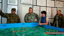 Defence Minsiter along with the Chief of General Staff of the Georgian Armed Forces Major-General Vakhtang Kapanadze and West Commander Colonel Mikheil Sadunishvili visitied the II Artillery Brigade in Khoni. Accompanied by the reporters, Tinatin Khidasheli viewed the infrastructure of the Brigade and simulation room where the special equipment arranged by the military personnel is placed. Later the guests attended the field tactical training.