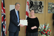 The Foreign Secretary attended a ceremony to commemorate honorary MBE Mrs Marina Tsitsishvili for services to UK-Georgian cultural and educational relations.