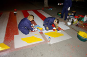 The zebra crossing was painted by students of the Tbilisi Art Academy, employees of the Interior Ministry and employees of the Didube region district municipal administration office.