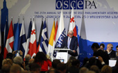 Members of the delegation of Russia who are attending the 25th session of the Parliamentary Assembly of the Organisation for Security and Co-Operation in Europe (OSCE PA) in Tbilisi, ...