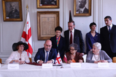 The transfer document was signed by Gela Dumbadze, the State Minister of Georgia for Diaspora Issues from the side of Georgian Government, while representatives of the families of the government of the first Democratic Republic of Georgia signed for France.
