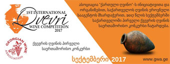 The Georgian Wine Association, supported by the National Wine Agency of Georgia, is conducting the first "International Kvevri Wine Competition" in Georgia, in September 2017. The winner of the competition will be announced at the closing ceremony of the event on September 3.