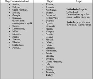 Table 1. shows approaches of countries on decriminalization of marijuana