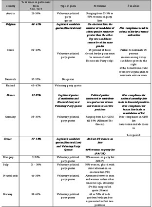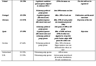 Sources: European Commission’s Network to Promote Women in Decision-making in Politics and the Economy. Working Paper on “The Quota-Instrument: Different Approaches Across Europe.”