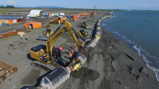 Along with the dredging vessel, the Athena, heavy equipment to perform large-scale maritime works is also mobilized at the port. These include 2.5 km long floating pipes, vertical drains of 3,500 km in length in total, 10 km long bunds, a 2.5 km long melioration channel and a water regulation system. 2nd phase of the maritime works is to deepen the bottom of the port to the operational depths (-16 m), which will turn Anaklia into the second deepest port in the black sea basin after the Port of Constanta in Romania.