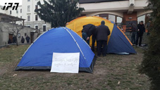 Family members and relatives of archpriest Giorgi Mamaladze, who was sent to prison for nine years last year for attempted murder, set up tents in front of the Georgian Patriarchate’s building in Tbilisi.