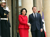 The article reads that “Zurabishvili has met President Emmanuel Macron at the Elysée Palace, on her first bilateral foreign trip as head of state. Zourabichvili was born in France and spent three decades working in its foreign service.